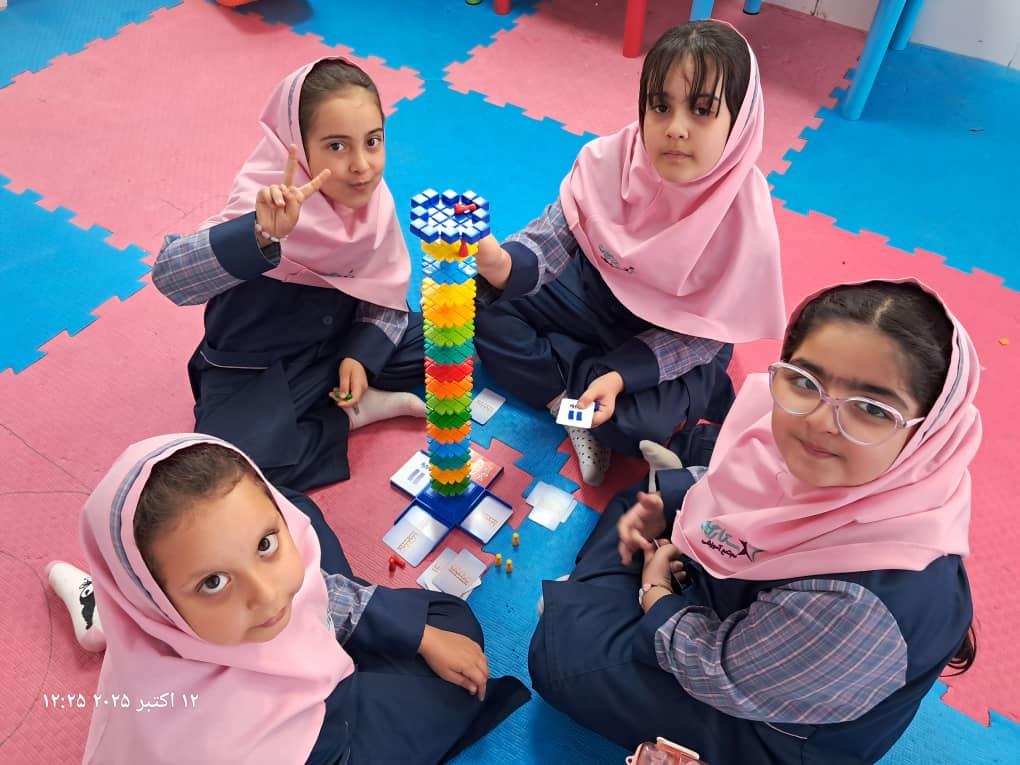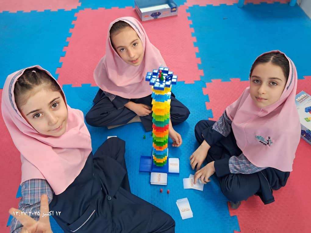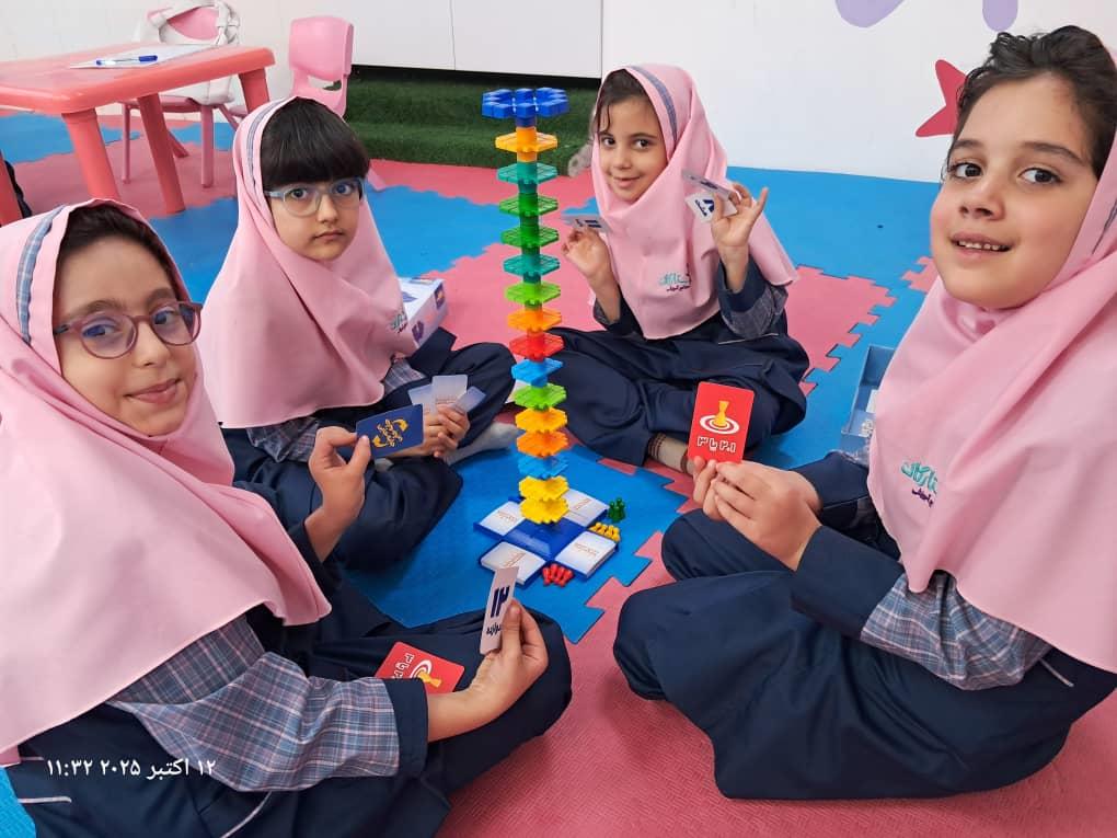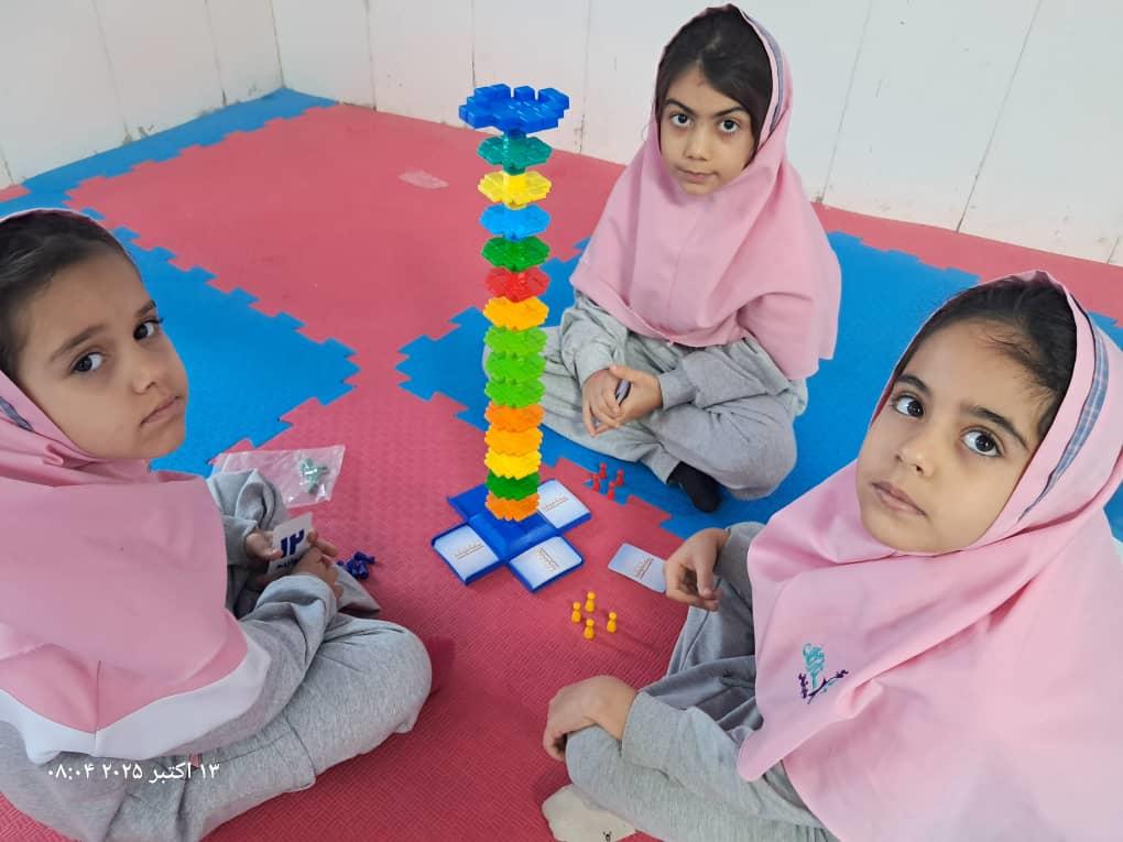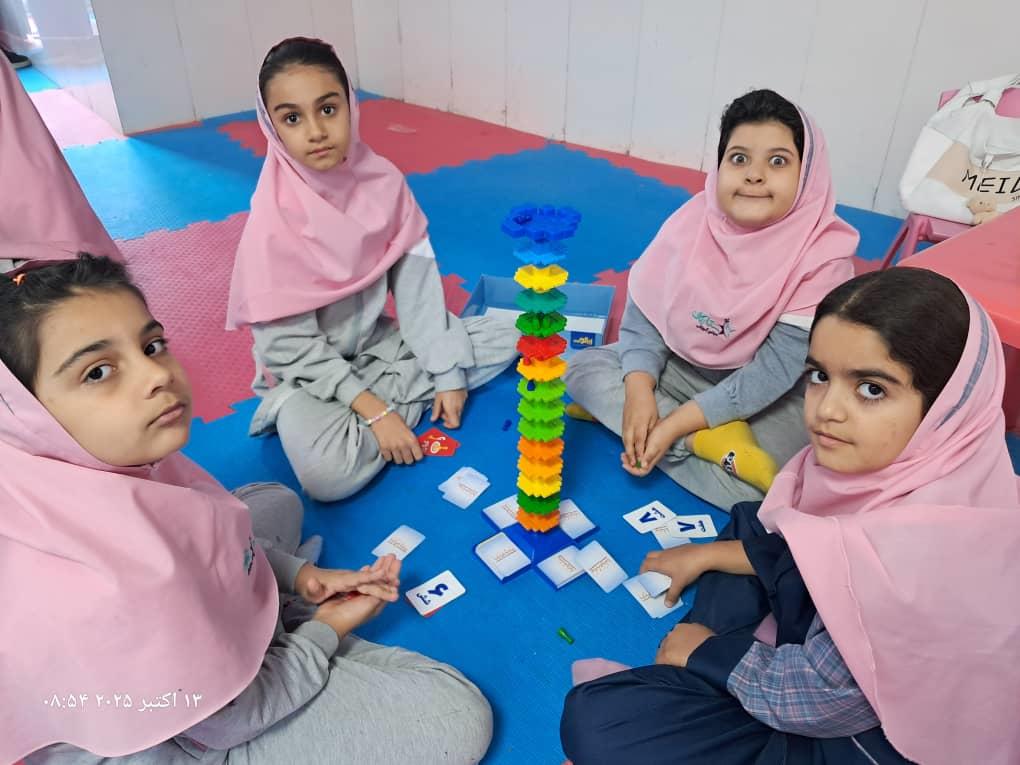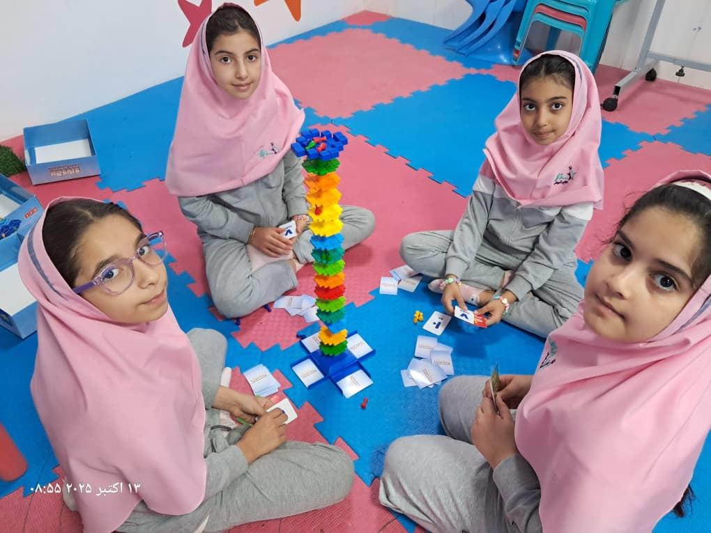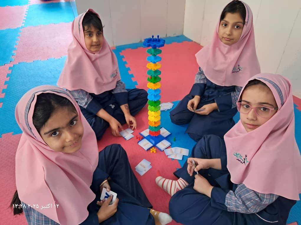 بچهها با همفکری و برنامهریزی در حال حل چالشهای بازی"برج و بارو"