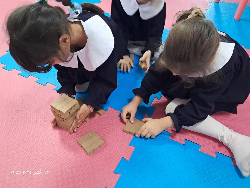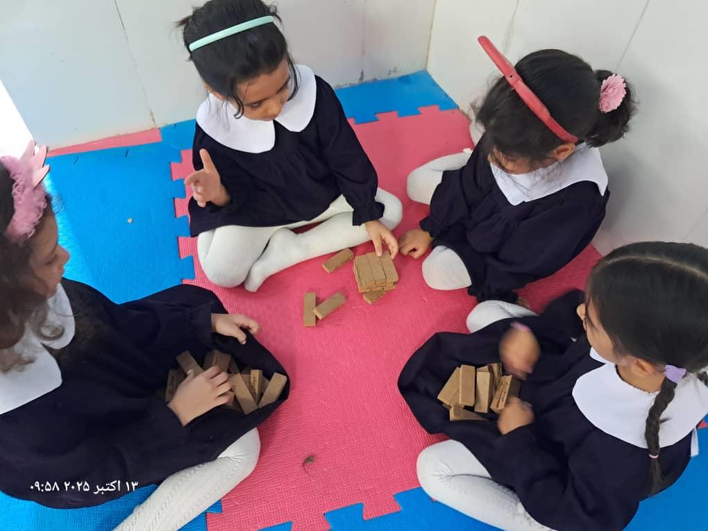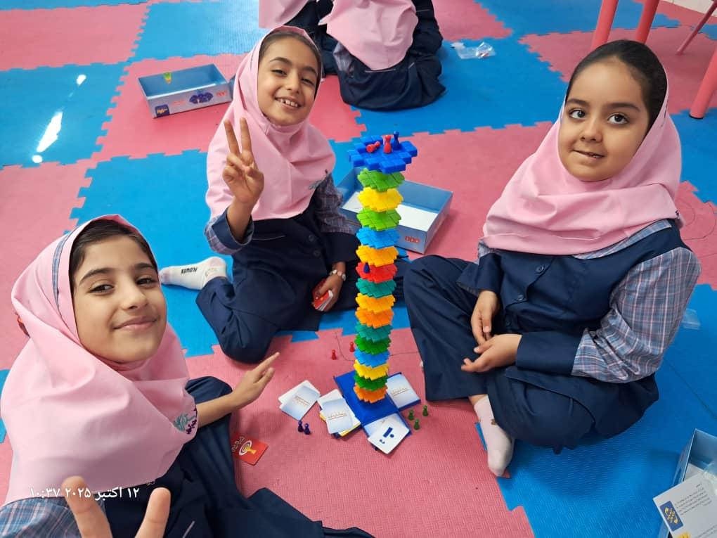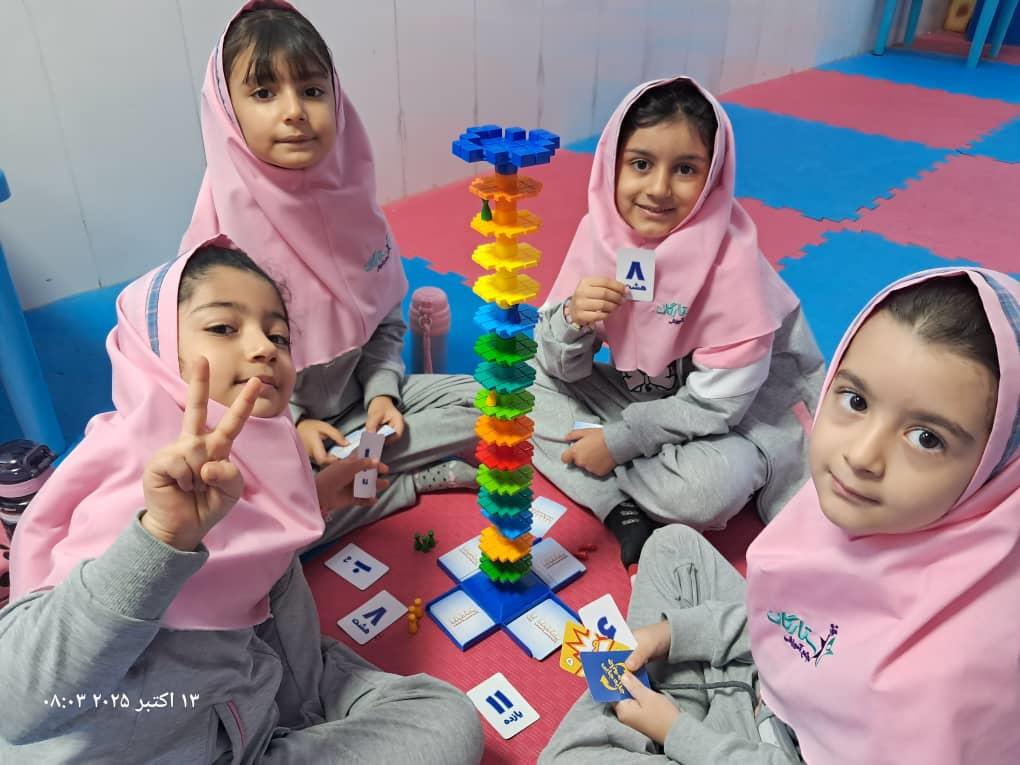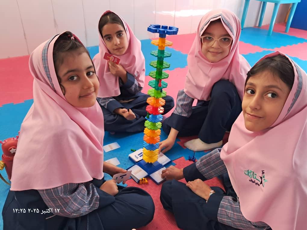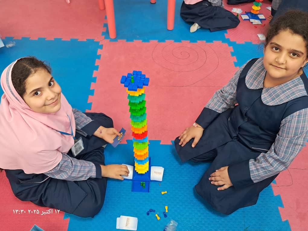 بچهها با همفکری و برنامهریزی در حال حل چالشهای بازی"برج و بارو"