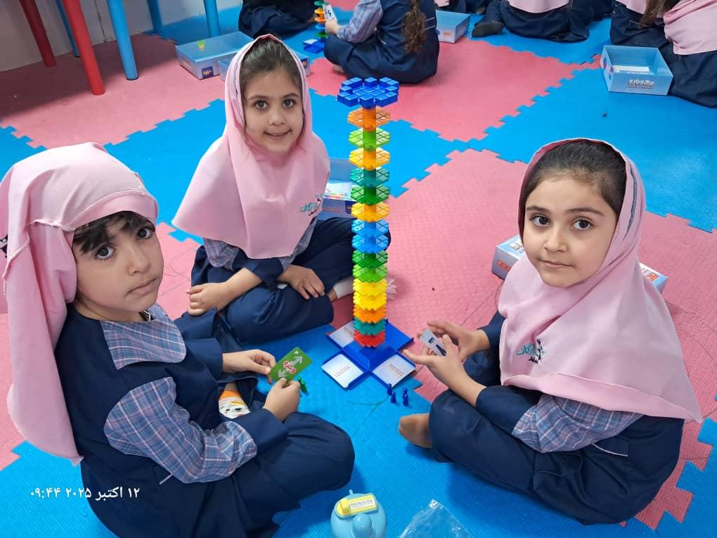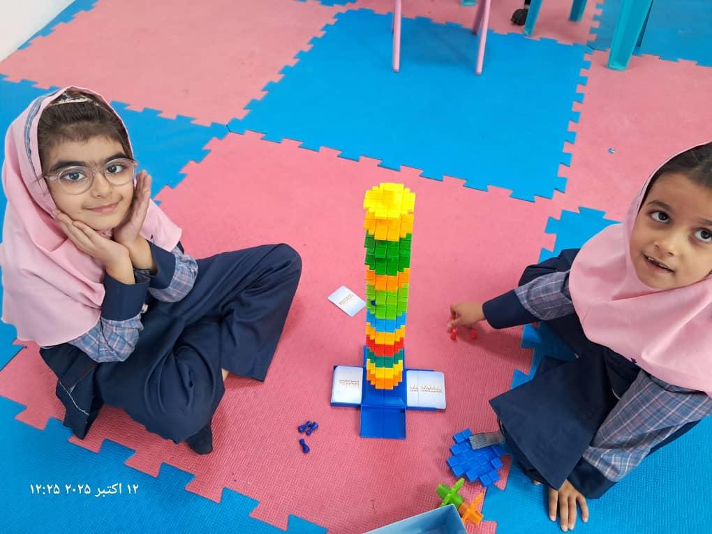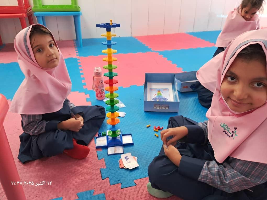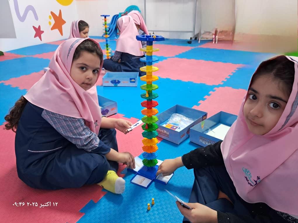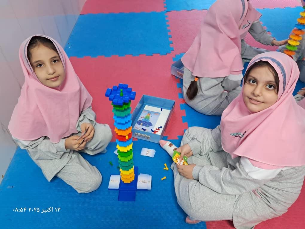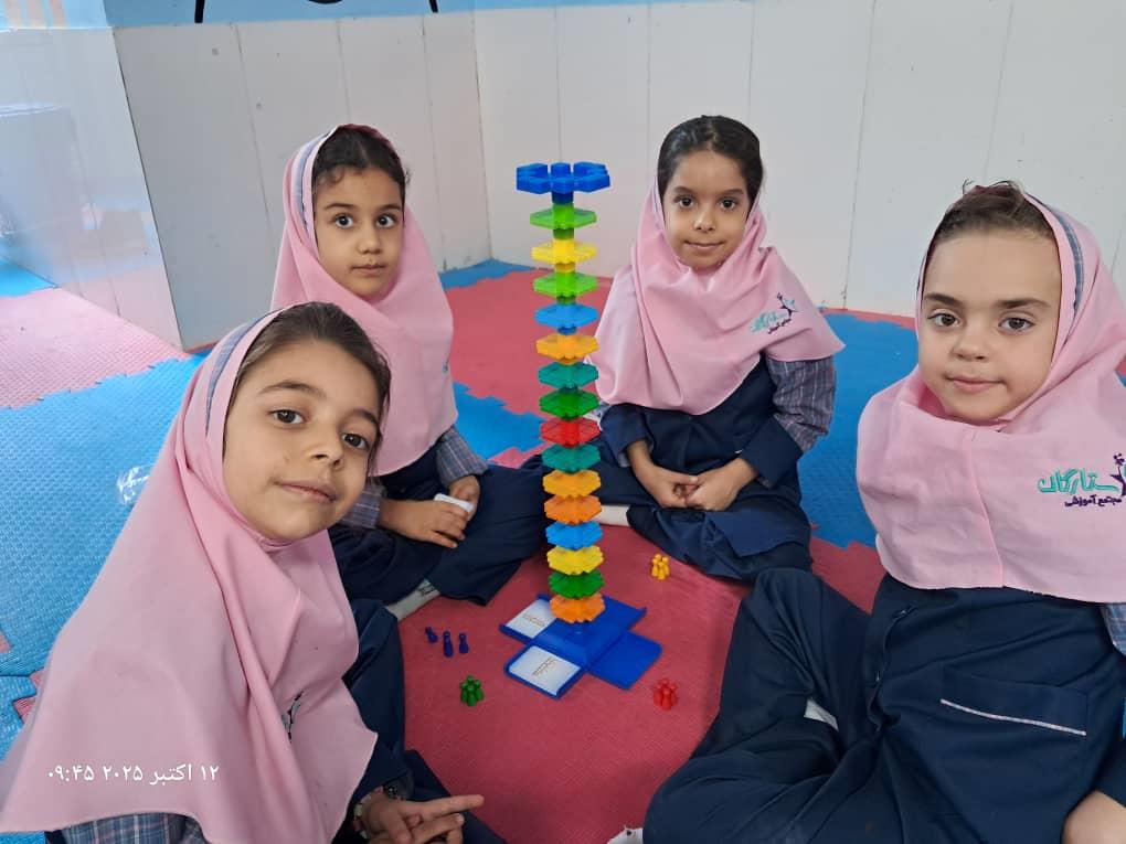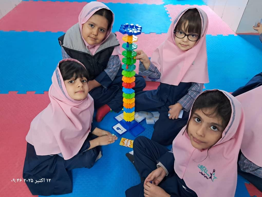 بچهها با همفکری و برنامهریزی در حال حل چالشهای بازی"برج و بارو"